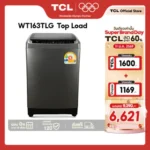 Mall ใหม่ TCL เครื่องซักผ้าฝาบน ขนาด 16 Kg. สีเทา รุ่น WT163FTLG ฝาครอบกระจกนิรภัย ปรับสมดุลถังอัตโนมัติ